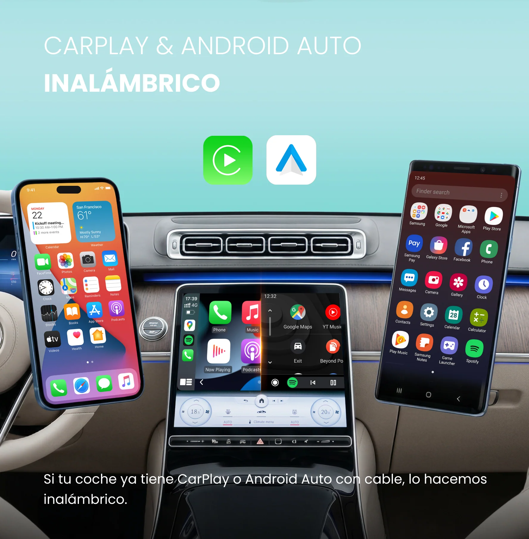 Disfruta de CarPlay y Android Auto de forma inalámbrica mientras conduces, haciendo llamadas, música y navegación fáciles y sin distracciones.