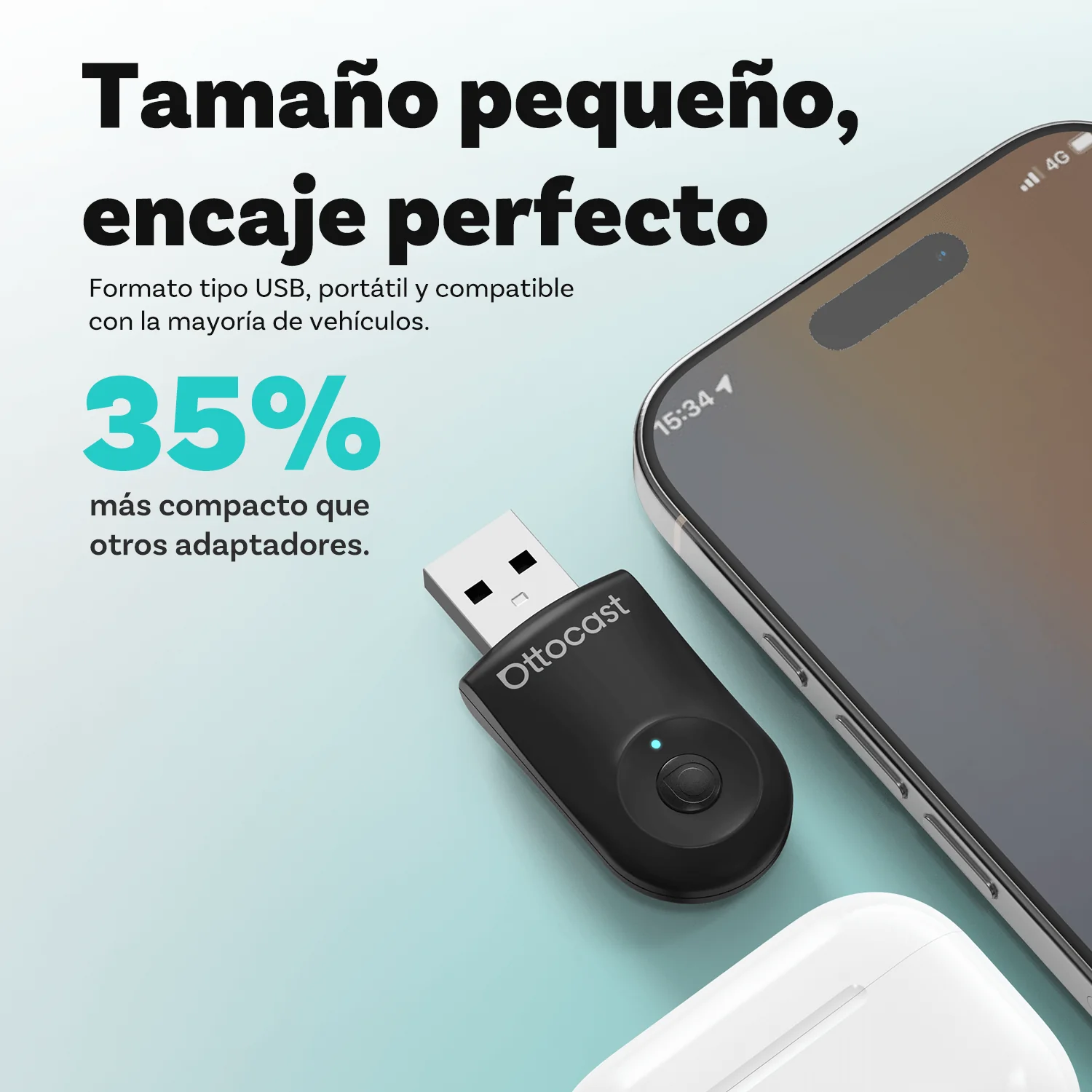Ottocast® Mini adaptador inalámbrico CarPlay/Android Auto